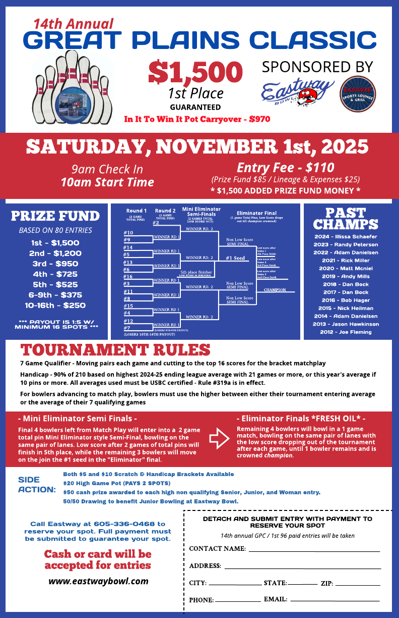 The GPC is no longer the scratch classic and will be handicapped 90%of 210 based on highest 2024-2025 ending league average with 21 games or more OR if current season’s average is 10 pins or higher
