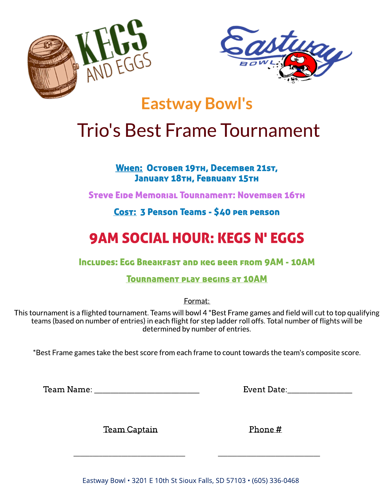 Please submit entries to our front desk or call Eastway at (605) 336-0468 to reserve your spot.
